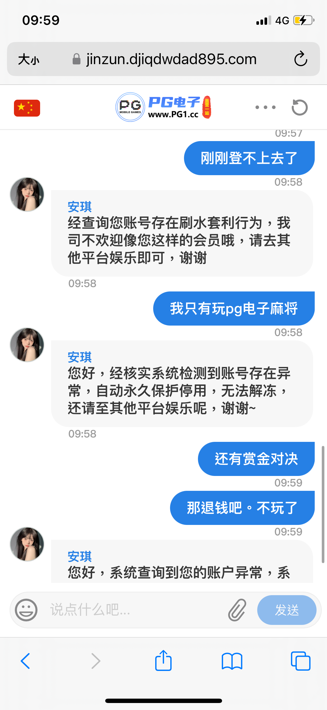 PG一站刚刚充了2w直接封号了