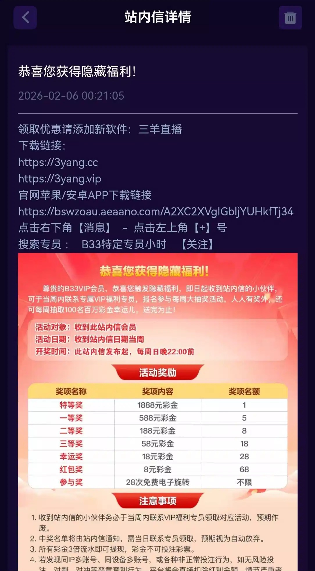 【B33】—✅— 站内信彩金