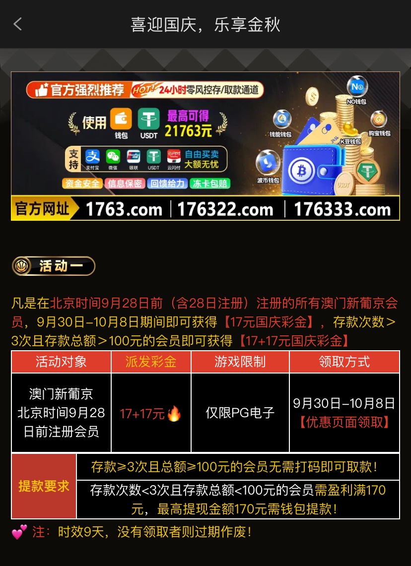 【澳门新葡京1763】—✅—国庆中秋彩金