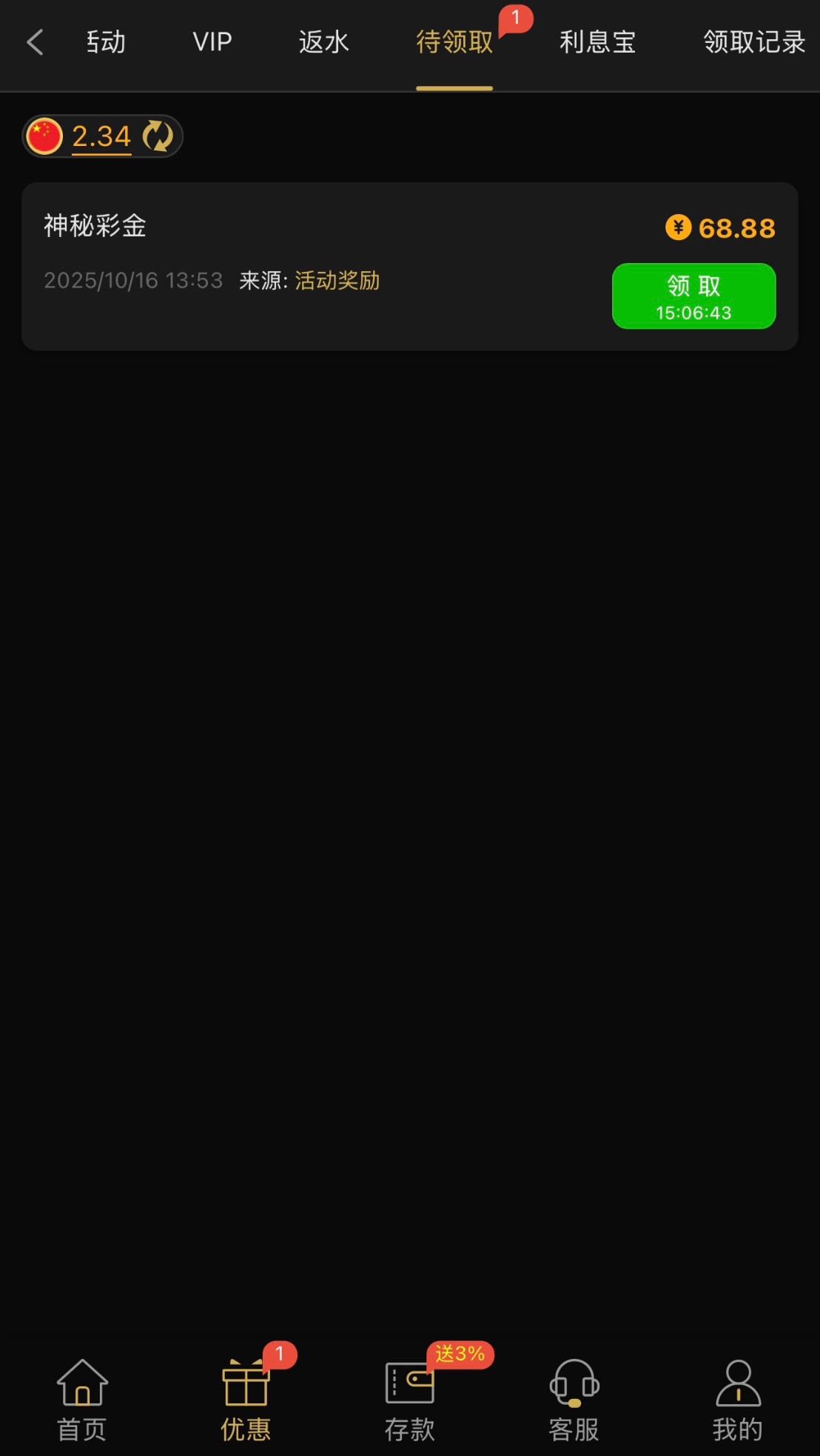 有充值过的兄弟可以登入看看自己有没有彩金