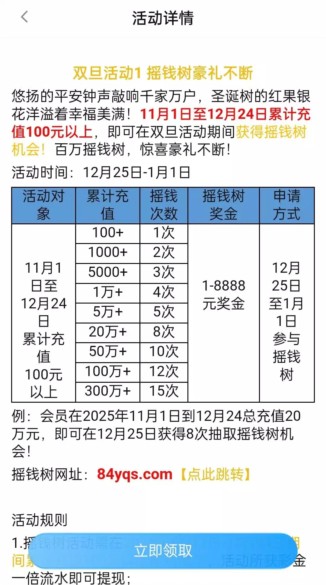 11月1号到12月24号期间有充值过100的才可以参加抽奖